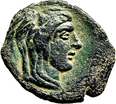 Veiled and wreathed head of Demeter right