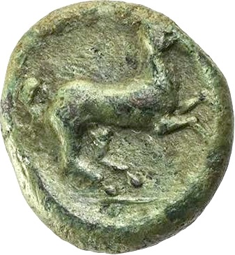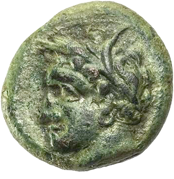 Männlicher Kopf (oder Kopf der Persephone/Tanit) mit Ährenkranz n. l.,