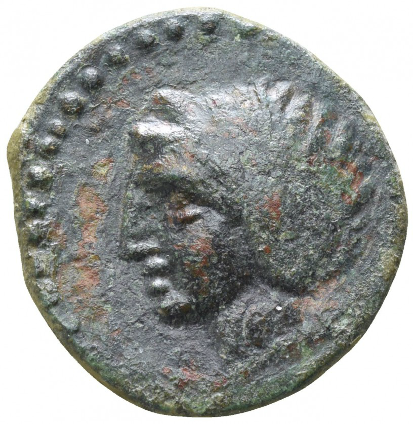 Laureate head of Apollo left dotted border