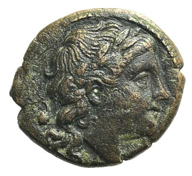 Kopf des Apollo mit Lorbeerkranz n.l., dahinter eine Lyra