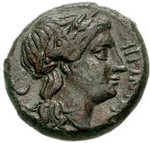 Apollokopf mit langem in den Nacken reichenden Haar n. r
