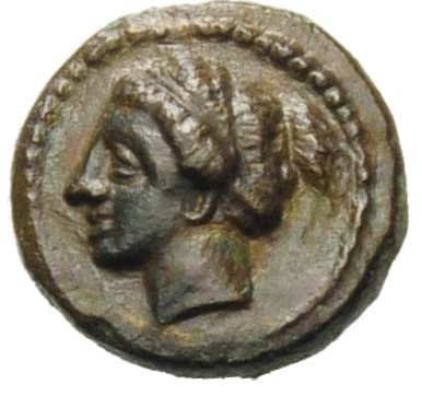 Bull butting left; exergue line and linear border, legend KAMAP-IN-AIΩN