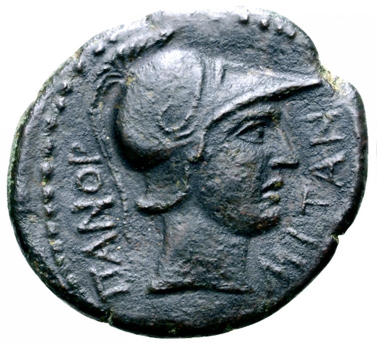 Kopf der Athena mit korinthischem Helm n.r. ΠANOPMITAN