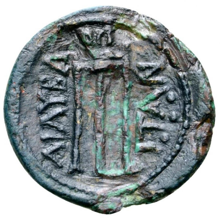 Tripod, in field l.r. ΛIΛIBA-ITAN ,in field right three pellets