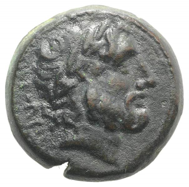 Kopf des Zeus im Lorbeerkranz n.r.; im Feld l.ΔIOΣ