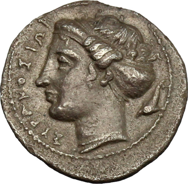 ΣYPAKOΣIΩN Kopf der Arethusa mit Sphendone n.l.; dahinter r. Delphin; im Perlkreis