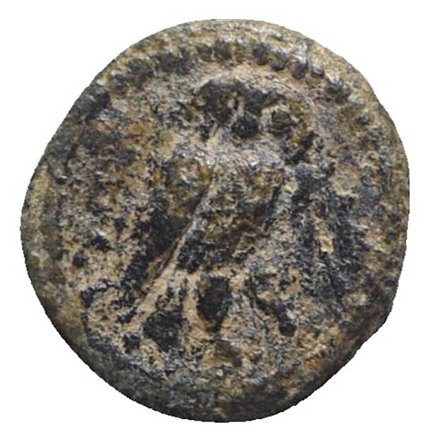 Eule steht n.r. , den Kopf n. Vorn, die Flügel geschlossen, Perlkreis