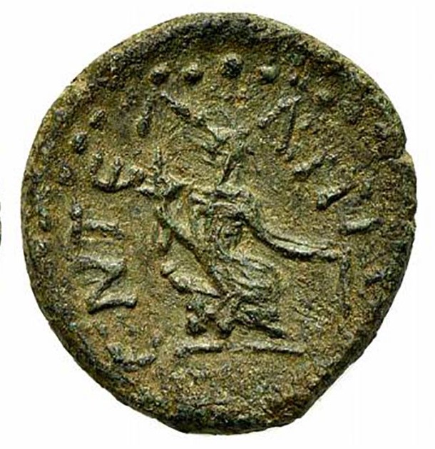 ENTEΛ-ΛINΩN; sitzende weibliche Figur n.r., hält Füllhorn im l.Arm, Phiale im rechten