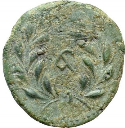 Laureated double-head of bearded Janus , dotted border