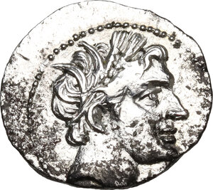 Männerkopf,geschmückt mit Ährenkranz n.r., Perlkreis
