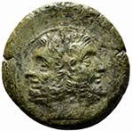 Janiform head in laurel-wreath