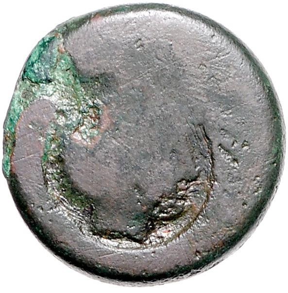 Auf älterer Münze großer Stempel – Kopf der Herakles n.r.