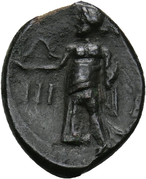 [PHΓINΩN] Hygieia steht n.l., füttert eine Schlange aus Phiale, links im Feld Wertmarke III