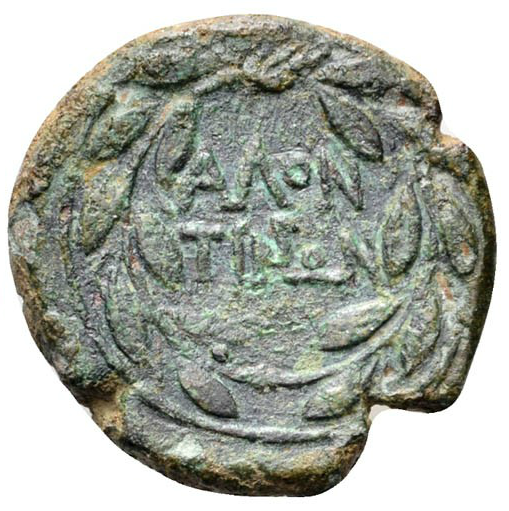Legende AΛoNTINΩN im Lorbeerkranz.; Fadenkranz