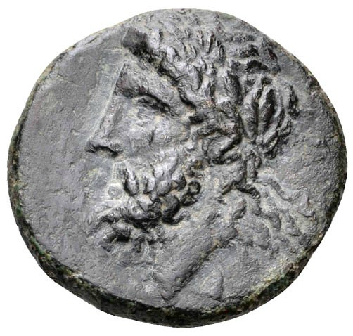 [AΣKHΛΠIO] bearded and laureate head of Asklepios left