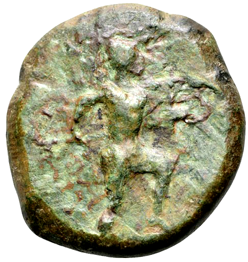 Protome eines menschengesichtigen, bärtigen Stieres n.r..Im Feld [[ΣIΛEPAIΩN (retrograd)]