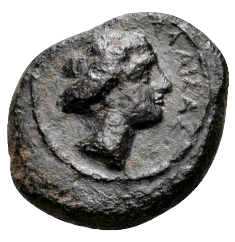 Head of Sikelia to right, in field r AΛAIΣAΣ, file border