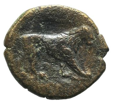 Löwe nach rechts; darüber und im Abschnitt [ΛEONTINΩN]