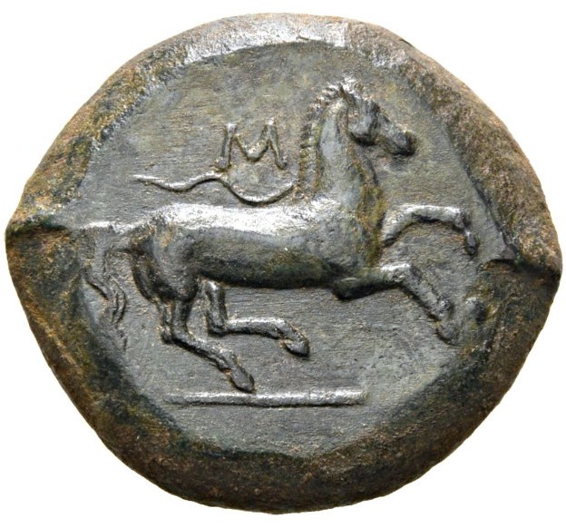 Athenakopf mit korinthischem Helm r.; davor AITNAIΩN