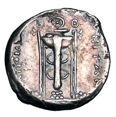 Kopf des Apollo mit Lorbeerkranz n.r., dahinter im Feld l. 8-strahliger Stern