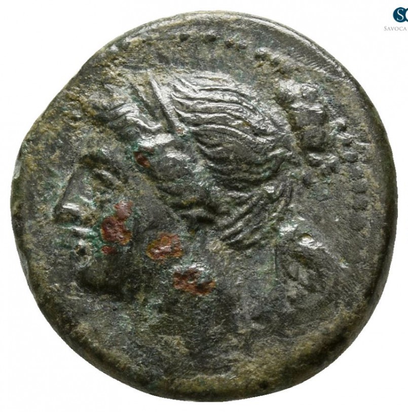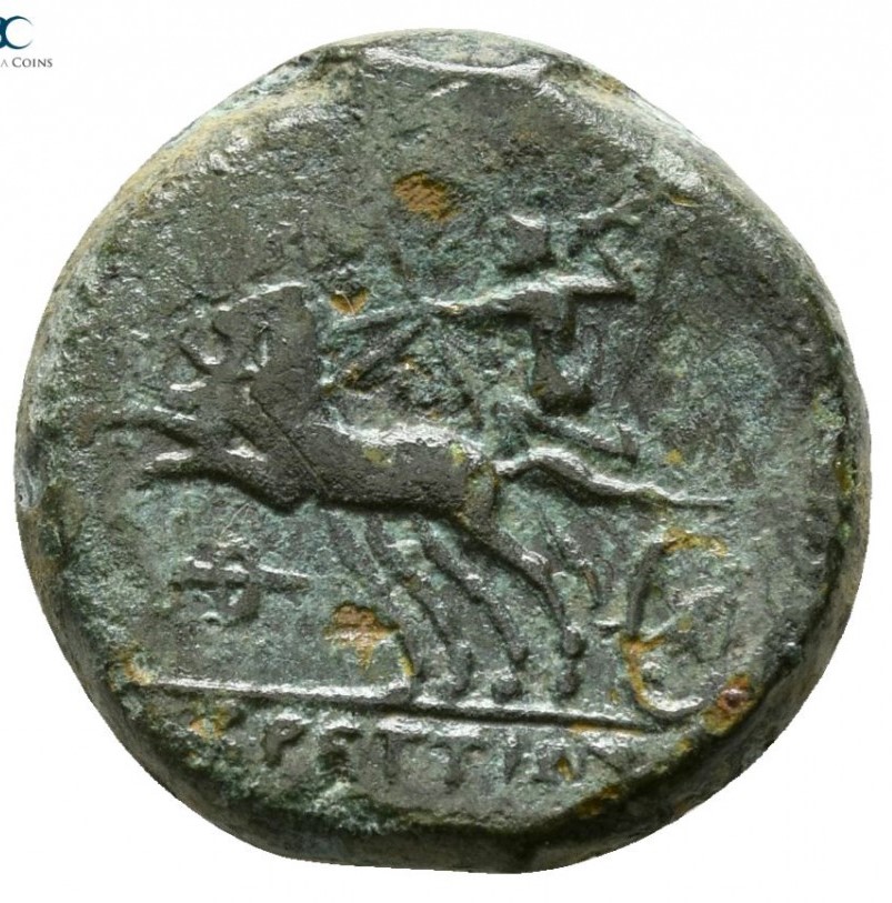 Zeus in Biga n.l.; hält Blitz in der rechten und Zügel und kleines Zepter i. d. linken Hand, darunter Fackel.; im Abschnitt BPETTIΩN