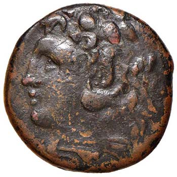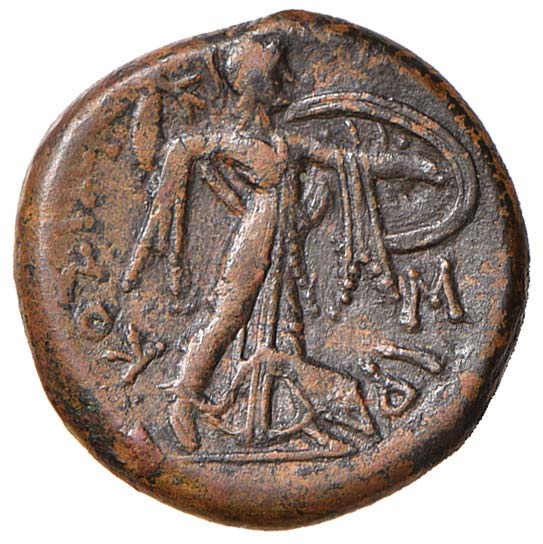 Athena Promachos to r.; she holds shield in her left and thunderbolt in her raised right hand; right ΣVRA and left KOΣIΩN