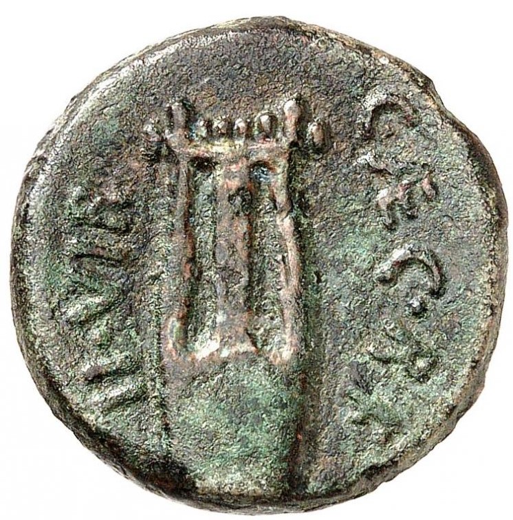 Kopf des Apollo mit Lorbeerkranz n.r., HΛ·ARC