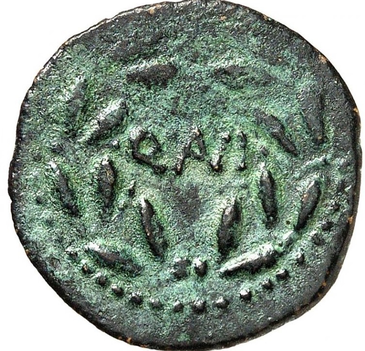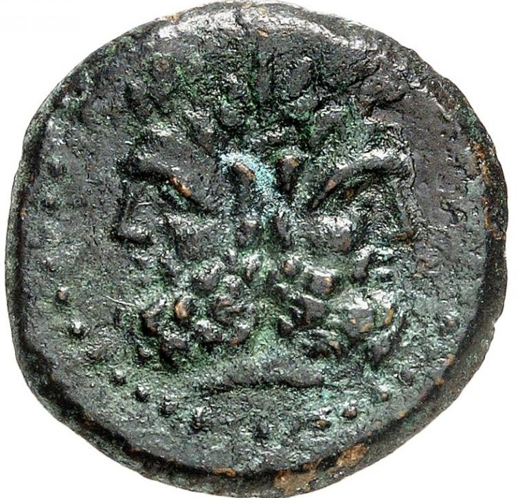 Januskopf mit Lorbeerkranz ; Perlkreis