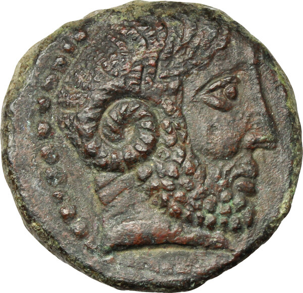 Laureate head of Zeus Ammon r.; [KATANAIΩΝ] dotted border