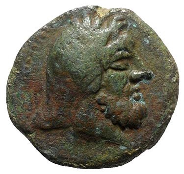 Kopf des bärtigen Herakles mit Lorbeerkranz n.r.
