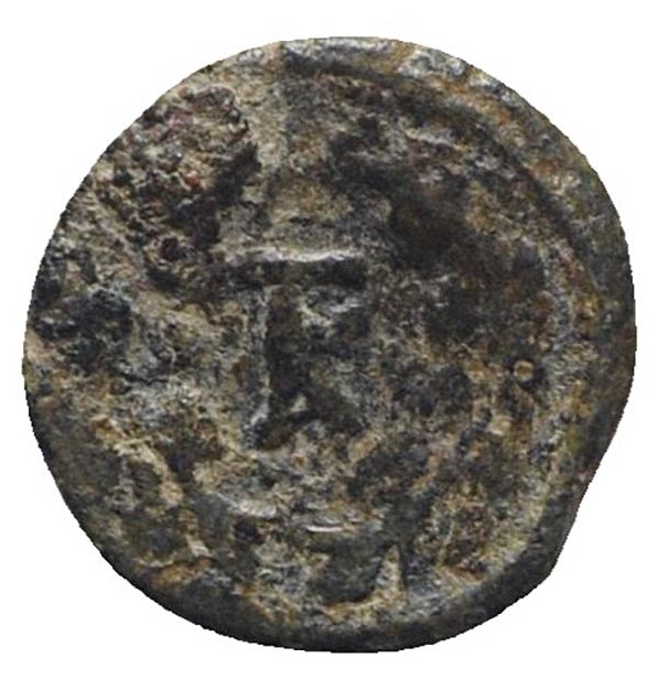 Eule steht n.r. , den Kopf n. Vorn, die Flügel geschlossen, Perlkreis