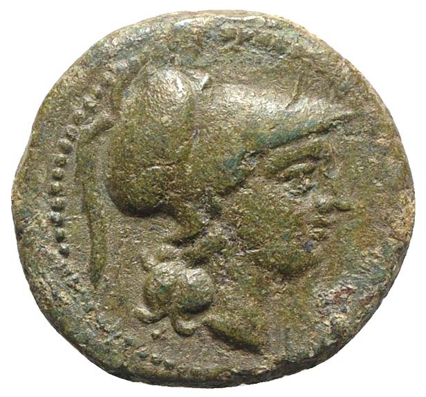 Kopf der Athena im korinthischen Helm n.r.; Perlkreis