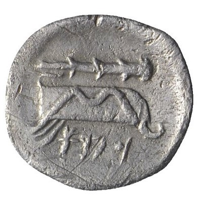 Keule über Köcher und Bogen, darunter „kfra“ in punischen Buchstaben