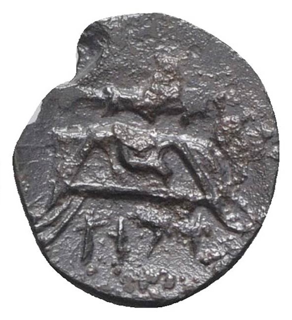 Keule, Bogen und Köcher, darunter“Kefra“ in punischer Schrift.