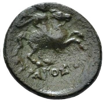 Ein Dioskur reitet n.r.; darunter ΣYPAKOΣIΩN