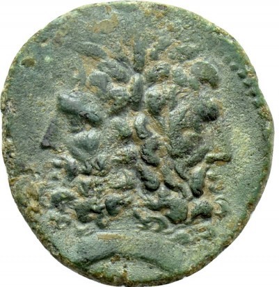 Laureated double-head of bearded Janus , dotted border