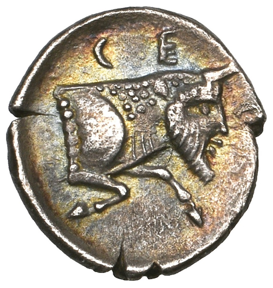 CE, menschengesichtige, bärtige Stierprotome n.r.