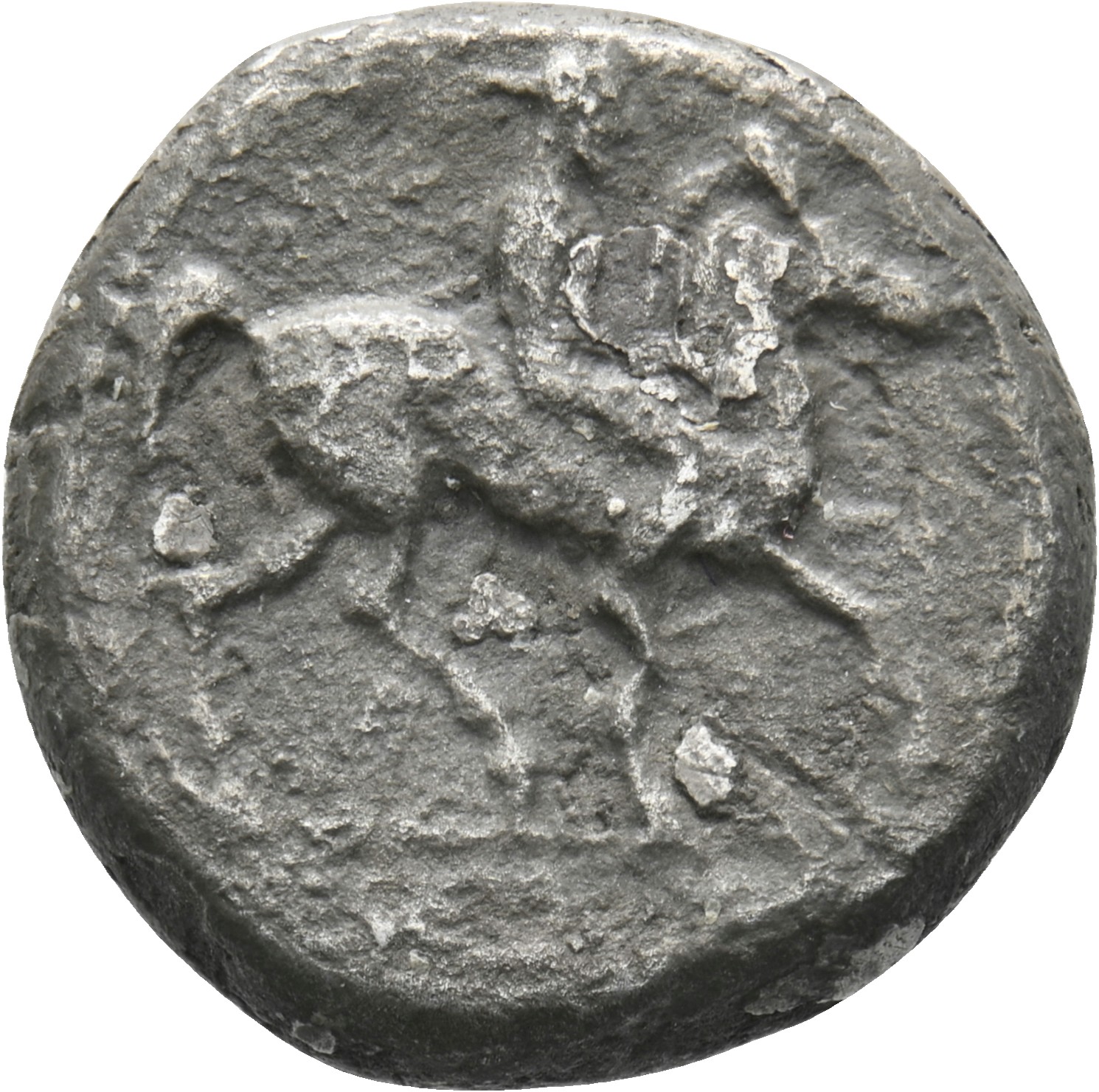 aked young horseman riding r.;exergue line; dotted border
