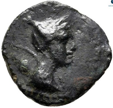 Bust of Artemis right, bow and quiver over shoulder