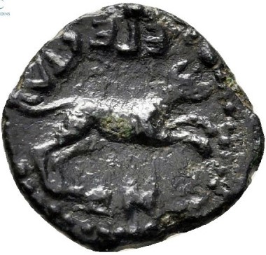 Hound leaping right, around ΕΓΕCΤΑΙ-ΩΝ (retrograd)
