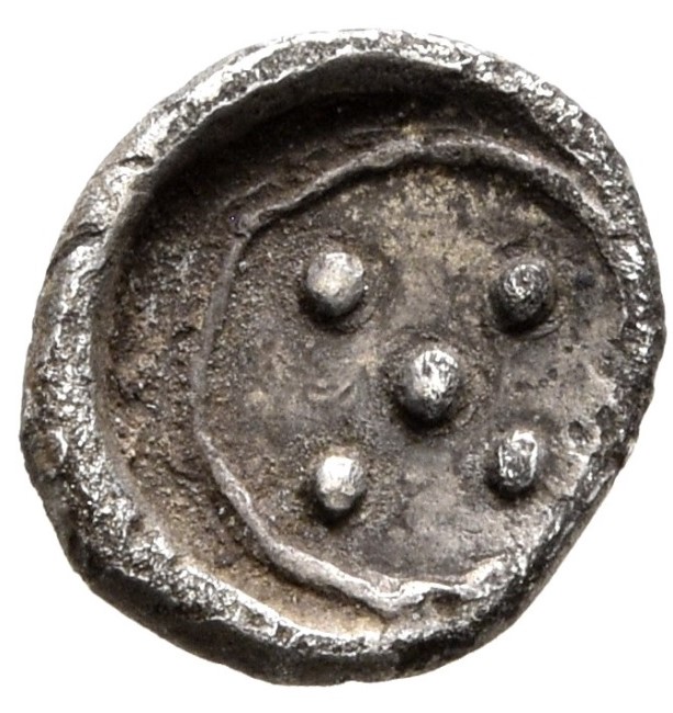 Fünf Punkte (Wertangabe) in inkavem Feld mit Fadenkreis