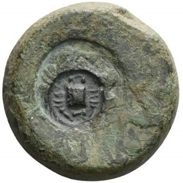 Gegenstempel (Krabbe) auf vorherigen größeren Gegenstempel (Herakles)