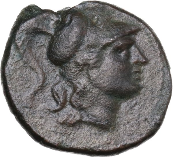 Kopf der Athena(Minerva) im Korinthischen Helm nach rechts, Perlkreis