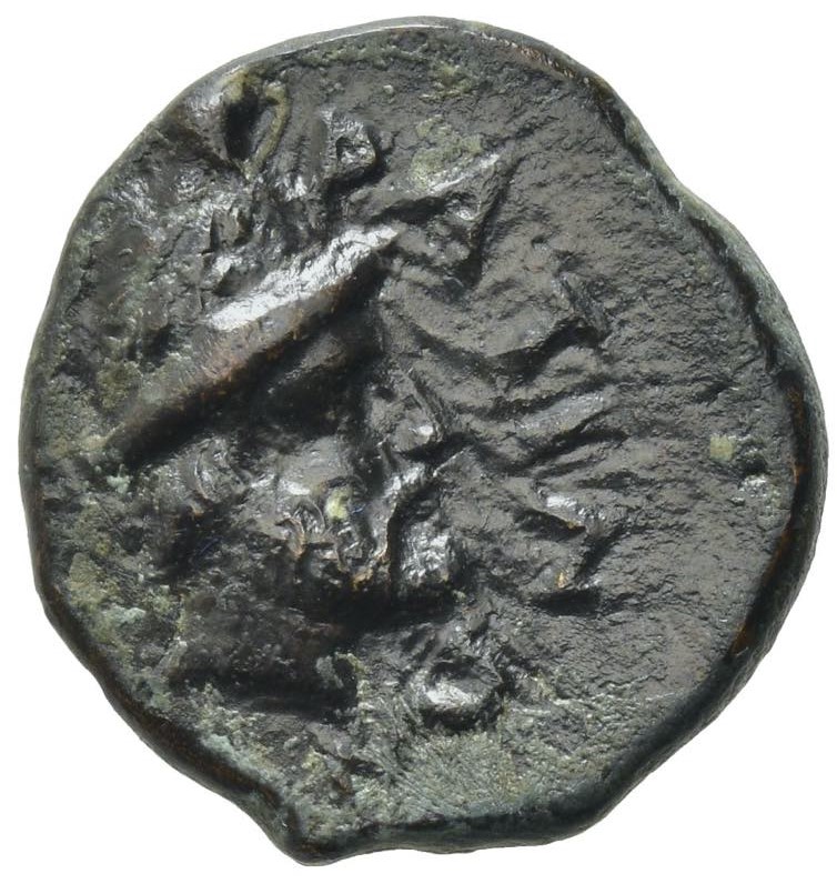 Kopf des Hephaistos mit Pilos n.r., davor [MYT]IΣPATINΩN