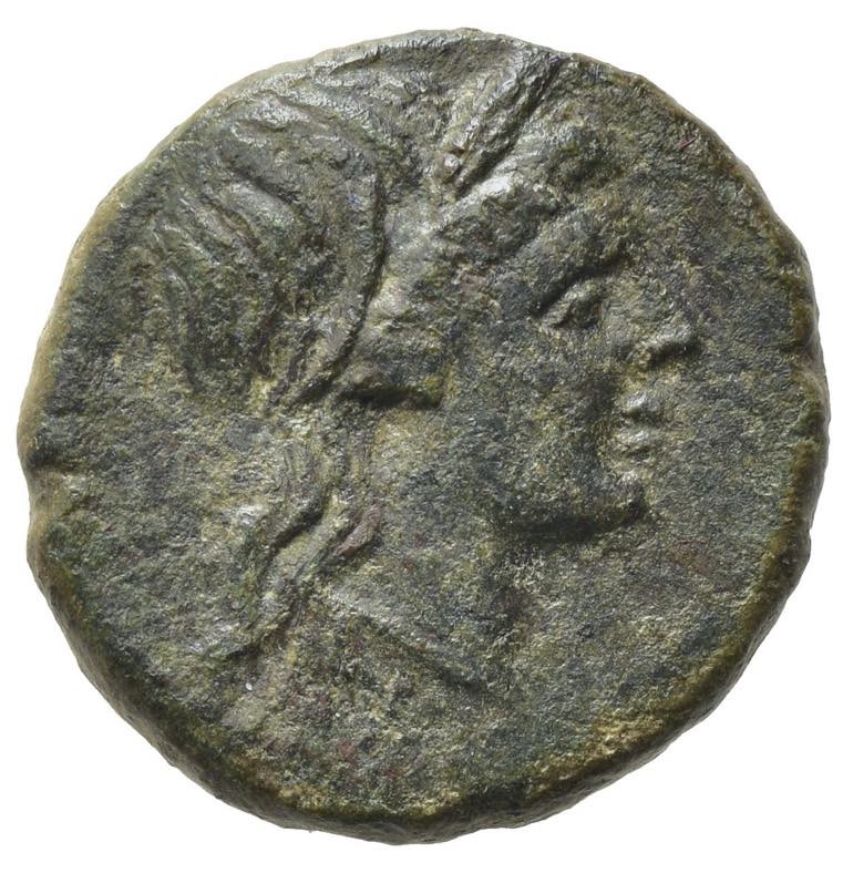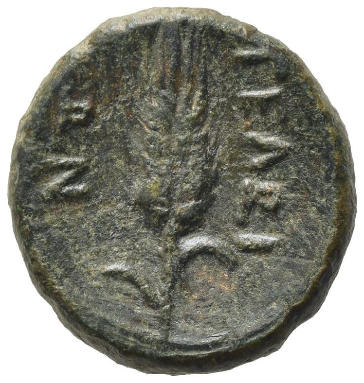 Grain ear, in field right ΓEΛΩI, left ΩN