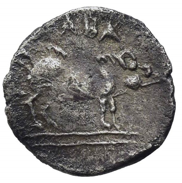 Boar standing r., on a double ex-line, above ABA,acorn to r.