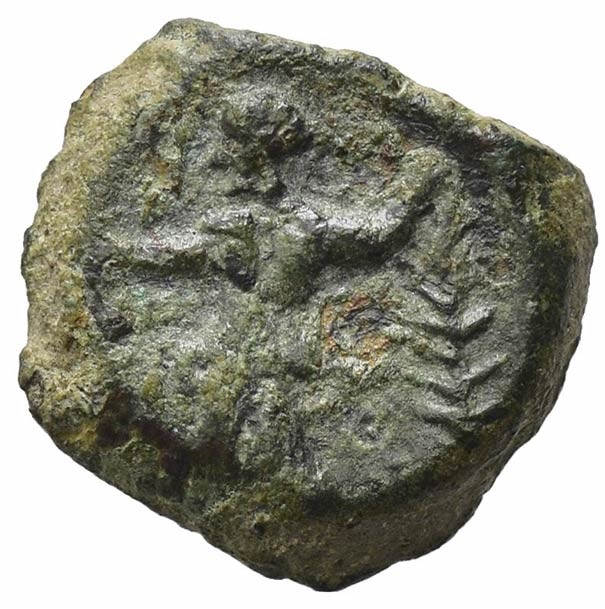 Nymphe steht n.l., opfert über Altar; rechts im Feld Zweig