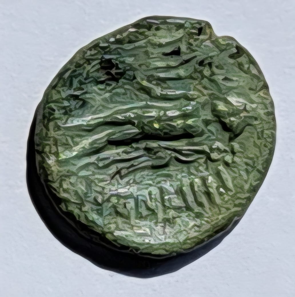 RHΓINΏN Hermes steht n.l., hält Olivenzweig und Caduceus, links im Feld IIII (Wertmarke)